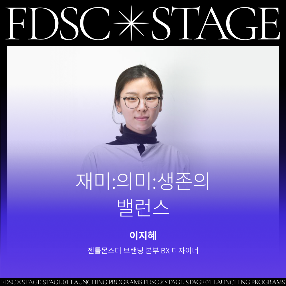 FDSC STAGE를 빛낼 네 번째 디자이너는 젠틀몬스터 브랜딩 본부에서 BX 디자이너로 일하고 있는 이지혜 디자이너 입니다! 브랜딩와 인터렉션을 접목시키는 작업을 해온 이지혜 디자이너의 Launching Programs는 파워포인트 라고 합니다.