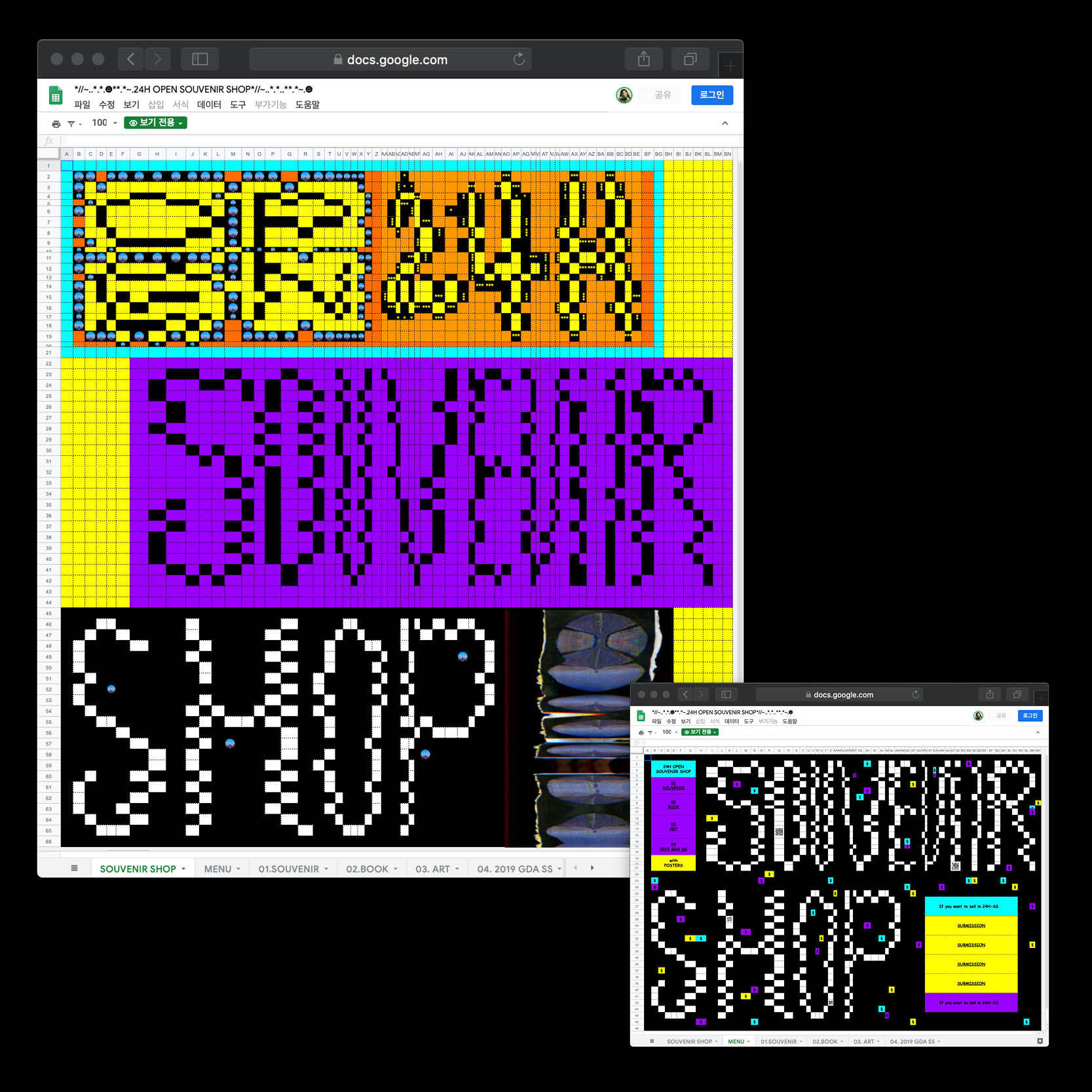 ‹24H Souvenir Shop›, Google Sheets Website&Posters, 2019