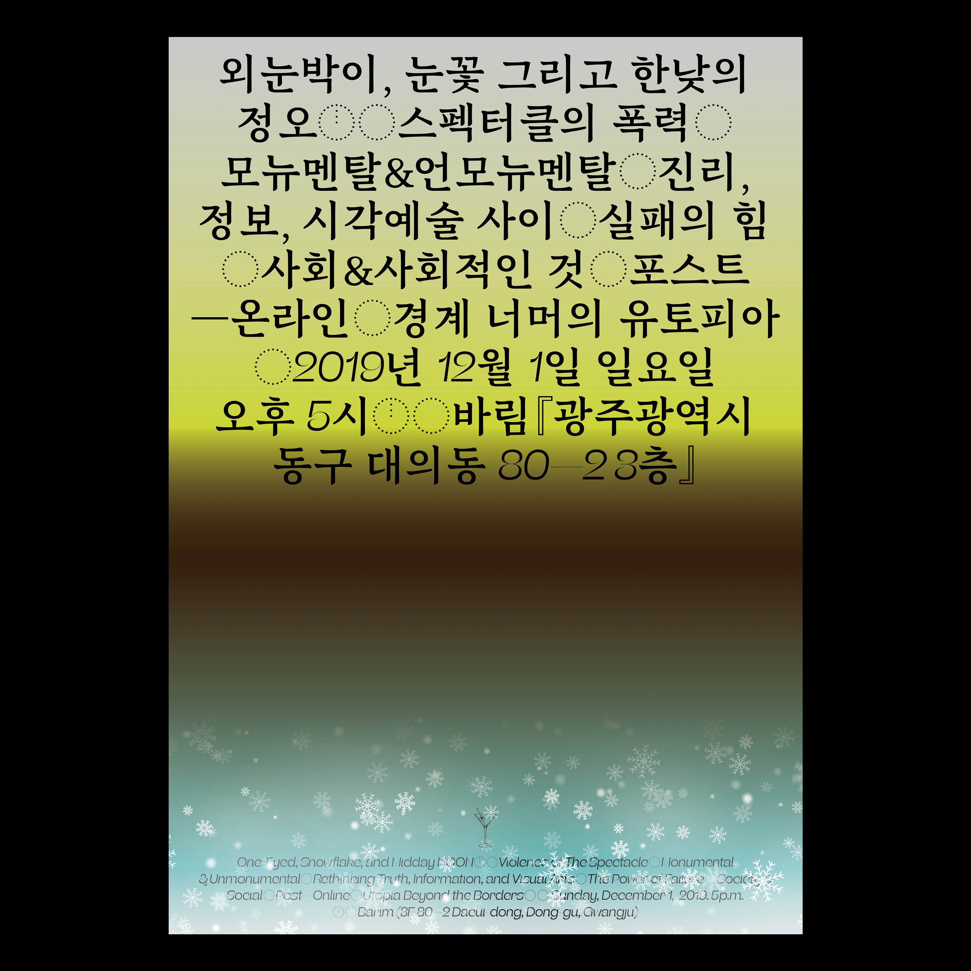 ‹외눈박이, 눈꽃 그리고 한낮의 정오›, Poster, 2019