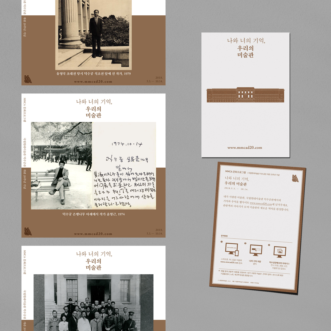《넘어 넘어: 진실을 말하는 용기》, 전시 그래픽디자인, 2020《Hernan Bas: Choose Your Own Adventure》, 전시 그래픽디자인, 2021《일그러진 초상》, 전시 그래픽디자인, 2020'스페이스K 서울' 개관 기념 포스터・초청장 디자인, 2020《디자인 아카이브 포럼 2020》, 그래픽디자인, 2020《Big Eyes: Margaret Keane Retrospective》, 전시 그래픽디자인, 2020MMCA 문화프로그램 《MMCA 건축기행: 김중업》, 그래픽디자인, 2018MMCA 문화프로그램 《나와 너의 기억, 우리의 미술관》, 그래픽디자인, 2018⟨가스트로노미 앙케트⟩, 국립현대미술관 서울관 《미각의 미감》, 2016⟨강원 스크랩⟩, 문화역서울284 《두 번의 올림픽, 두 개의 올림픽》 전시 연계프로그램 기획 및 디자인, 2018