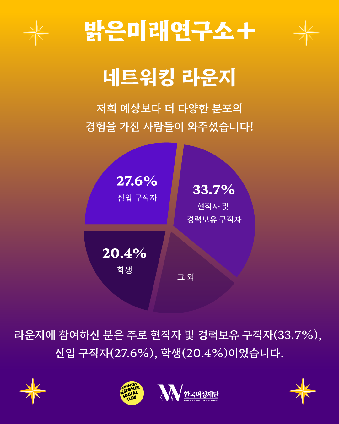 FDSC는 한국여성재단의 지원을 받아 총 24명의 멘토들 및 224명의 참가자들과 함께 시각디자인 분야의 예비/주니어 디자이너를 위한 이벤트 [FDSC 밝은미래연구소+]를 개최했습니다.